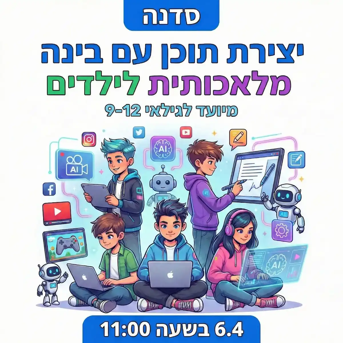 הדגש הוא על יצירה, עבודה בצוות, חשיבה ביקורתית והתנסות בטוחה בכלי בינה מלאכותית עם תוצר ברור שאפשר להציג ולשתף